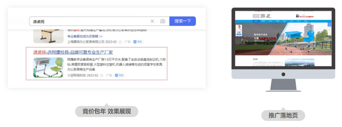 置顶搜索引擎竞价广告位前五展示,点击直达落地页,